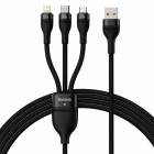 Baseus 3in1 USB Cable Flash Series, USB-C + Micro USB + Lightning, 100w, 1.2m Black (CASS030001) (BASCASS030001)