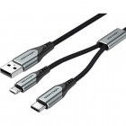 VENTION Nylon Braided USB 2.0 A Male to Dual Type-C Male Y-Splitter Cable 1M Gray Aluminum Alloy Type (CQOHF) (VENCQOHF)