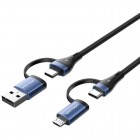 VENTION 4-in-1 Cotton Braided USB 2.0 Type-A Male + USB-C Male to USB-C Male + Micro Type-B Male 5A Cable 1M Blue Aluminum Alloy Type (CTLLF) (VENCTLLF)