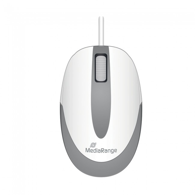 MediaRange Optical Mouse Corded 3-Button Compact-sized (White/Grey, Wired) (MROS214)