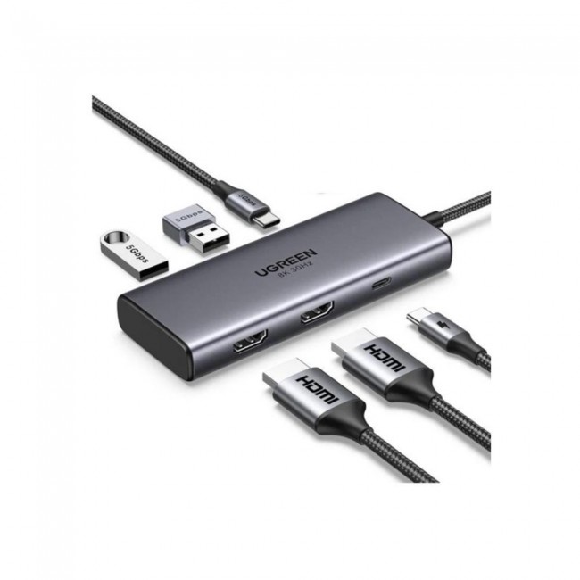 Ugreen Adapter 6w1 CM498 Hub USB do 2x USB-A 3.0 USB-C 3.0 2xHDMI PD (15852) (UGR15852)